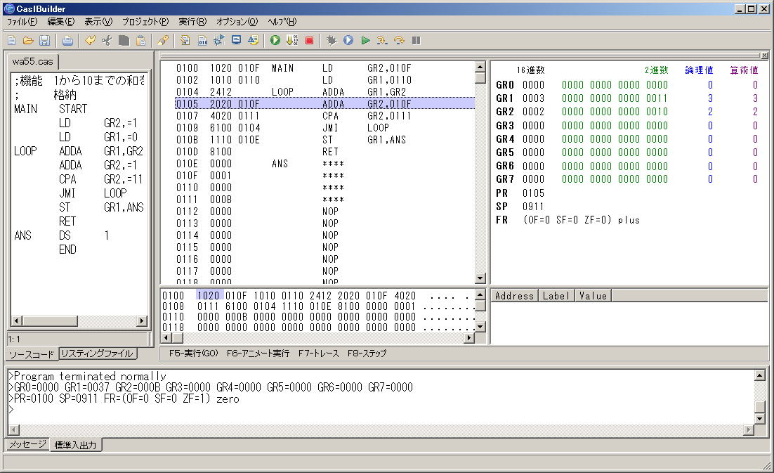 - 情報処理技術者試験センター発行の「(CASLII)アセンブラ言語の仕様」に完全準拠です。